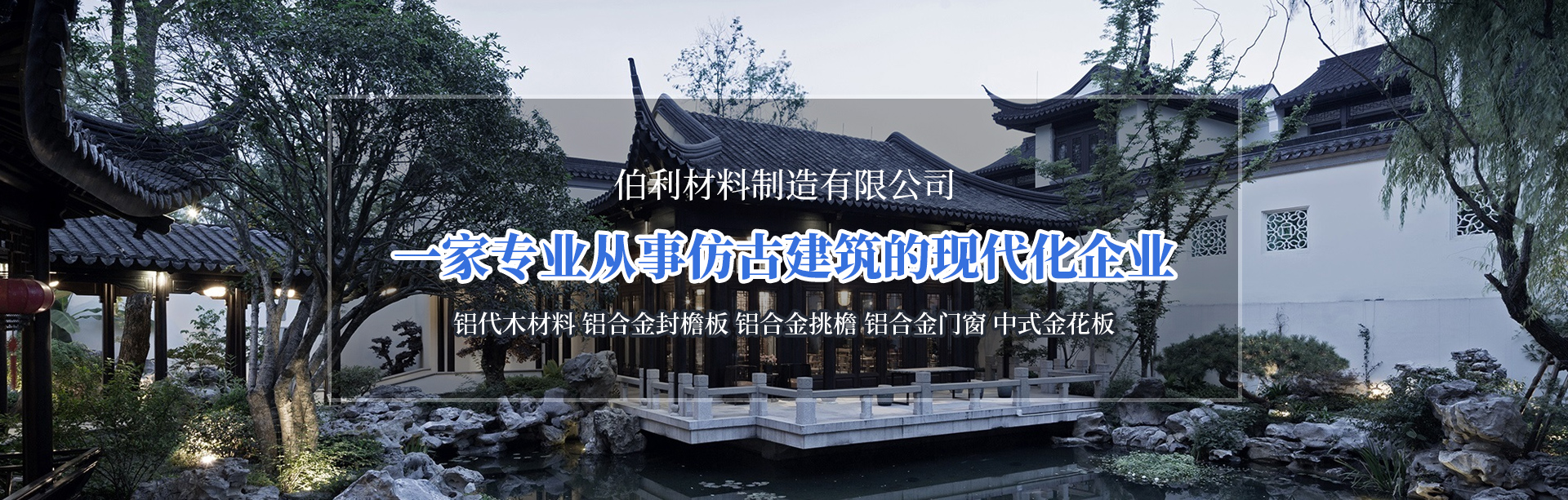 黑龍江伯利材料制造有限公司是一家專(zhuān)業(yè)從事仿古建筑的現代化企業(yè),由于中國的強大,民族自信心回歸對中華文化的向往,名人志士對中華文化的弘揚,從建筑形式上采取古法新材料的結構。以現代工業(yè)材料“鋁”代替傳統的木材。從美觀(guān),耐久和造型對古建的一次升華。本公司主要經(jīng)營(yíng)仿古建筑的設計,施工,構件制作安裝,仿古門(mén)窗,仿古掛件,仿古屏風(fēng)焊接及雕刻制作,各種亭,廊,閣,榭的制作安裝。與之配套的仿石構件制作安裝,小品雕塑。也為現代建筑配套鋁單板,幕墻制作安裝。目前是東北三省一家從事仿古建筑及“鋁代木”項目的企業(yè)。